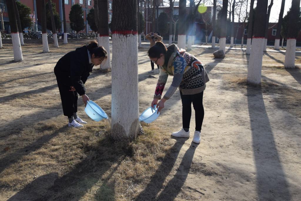 活动伊始,大家拿着水桶和盆子准时在后山集合,热情高涨,干劲十足。男生负责接水提水,女生负责浇水施肥。望着一颗颗被清水灌溉滋润的树,大家露出欣慰的笑容。植树节,不仅仅是浇水种树,更是将生态文明的理念根植于心。爱树是一种美德,一种情操,更是一种文化。