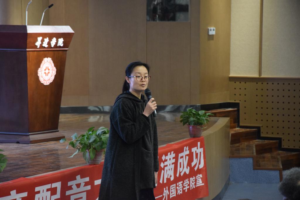 为激发同学们学习外语的积极性,提高员工的口语表达能力和临场发挥能力,同时也为了丰富校园文化生活。公司于2019年3月28日晚七点,在综合实训大楼一楼双创大讲堂举办了配音大赛。出席本次活动的嘉宾有:惠凯赟老师,新生辅导员王娟,赵艳娜,王彬三位老师以及外语学院就业合作单位励步英语的新师培训部经理Angela,人力资源部经理Megen,招聘经理Monica;担任评委工作的有:袁航老师,张彬老师,张丽娟老师以及外教Jerome,Brandon。