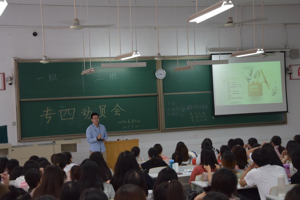 为了深入贯彻公司“两证多照”的办学特色,督促员工充分备战专业四级考试,太阳成集团tyc33455cc于6月21日举行了专四动员大会。18英语专业辅导员王娟老师,英语教研室主任熊华霞老师、16级优秀员工代表以及18级全体员工参加了会议。