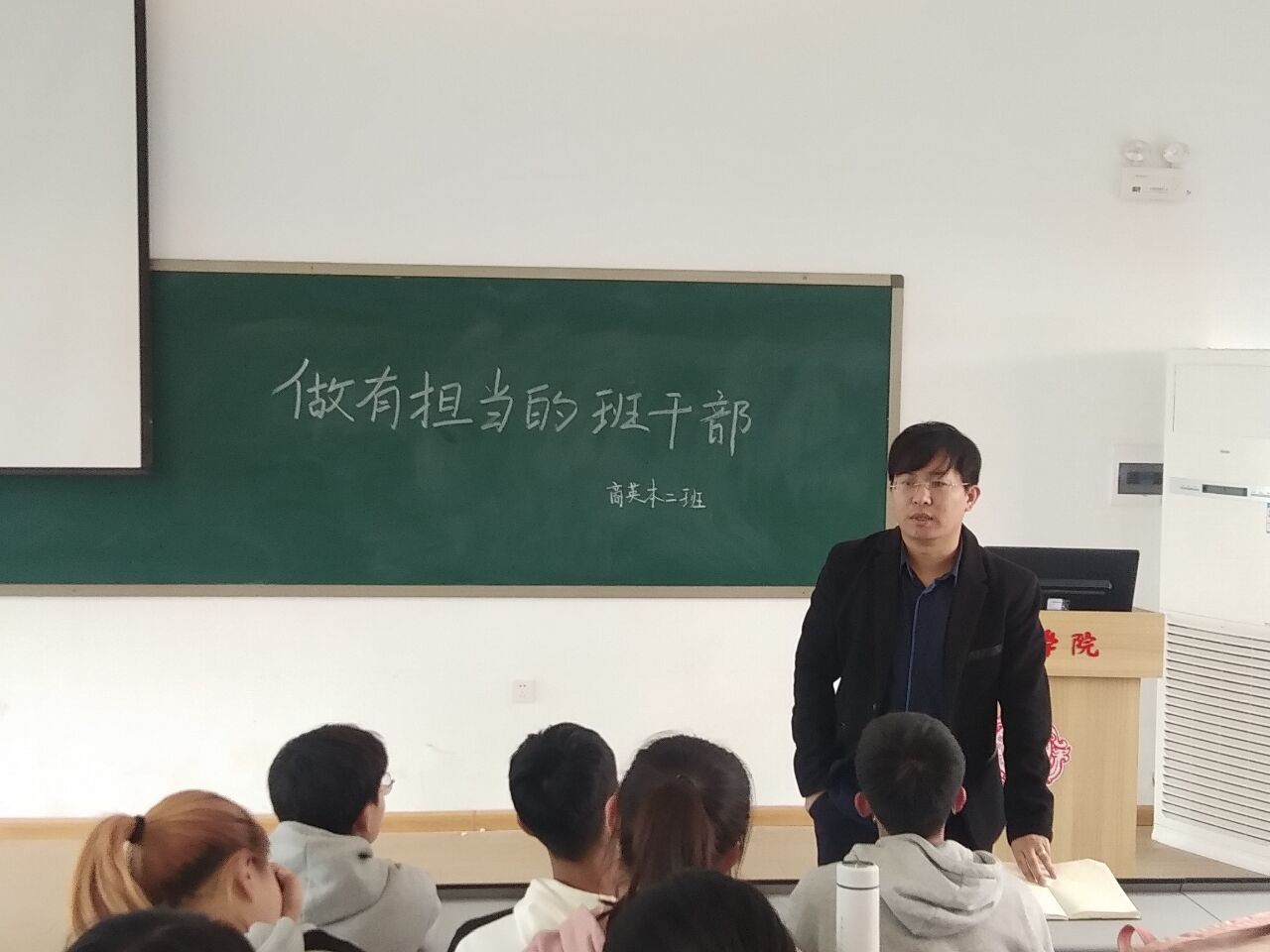 在王鑫老师的见面会上,他首先每个同学都应该树立主人翁意识,为班级建设献计献策,员工干部应该担起营造互帮互助,争先创优的班级氛围的责任在班级建设、专业学习竞赛等方面积极想办法,共同开创佳绩。
