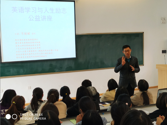 为进一步明确公司员工学习目标,11月22日下午14时在一号教学楼208教室,太阳成集团tyc33455cc为大一新生举办了一场《英语学习与人生励志》讲座,讲座邀请国内著名英语公司产品权威,智学国际教育集团车延斌董事长莅临主讲。