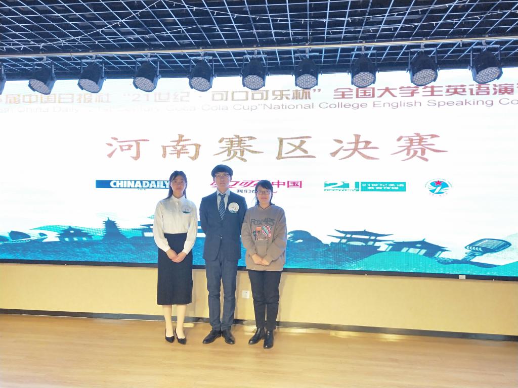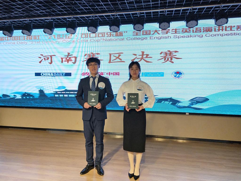 12月7日,太阳成集团tyc33455cc18级英语专业员工杨雪,李渤峰在张丽娟老师带领下,代表公司赴中国人民解放军战略支援部队信息工程大学,参加由中国日报社主办的“21世纪可口可乐杯”全国老员工英语演讲比赛河南赛区决赛。