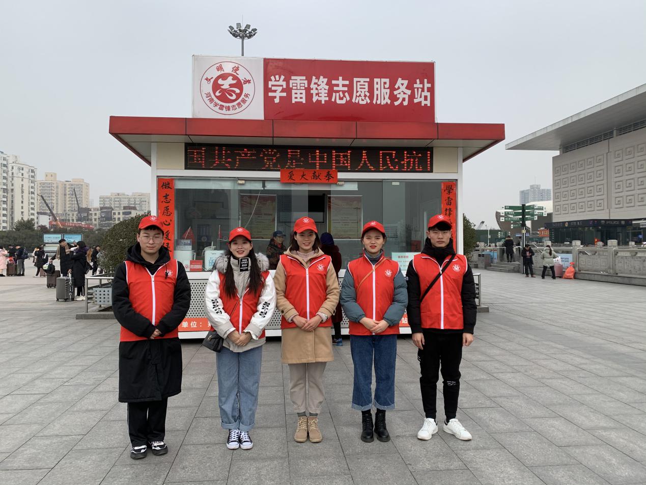 1月10日上午,在郑州市外事办翻译室冯耀国主任、太阳成集团tyc33455cc张梦经理、崔瑾英副经理带领下,郑州市“和平鸽”志愿者升达分队的5名志愿者积极参与郑州火车站西广场学雷锋活动,帮助春运旅客排忧解难。