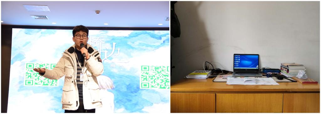 接到学校“停课不停学”的通知后,马添翼老师知道不久的将来自己又会有一个新的身份——“主播”,他不禁跃跃欲试,家中没有合适的课桌,便和母亲商量将原来放电脑的桌子改成了临时的讲台。