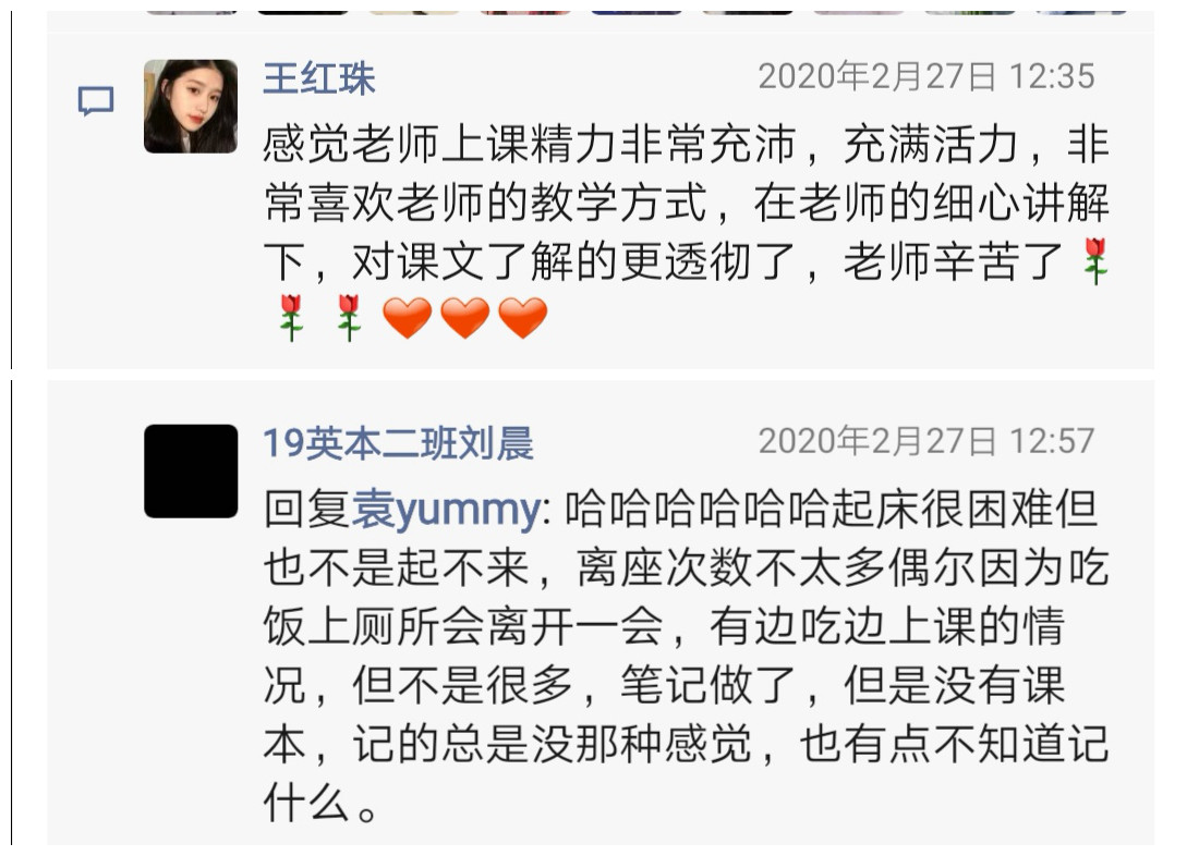新学期处于抗战疫情的关键时期,教师们“停课不停学”,纷纷积极提前备战网络教学。袁亚敏老师也不例外,这学期,她教授的《综合英语》课程每周三次课,6个学时,是专业基础课,所以她更是严格要求自己,精心打造网络课程,各格外重视直播教学中最重要的环节——课堂管理。