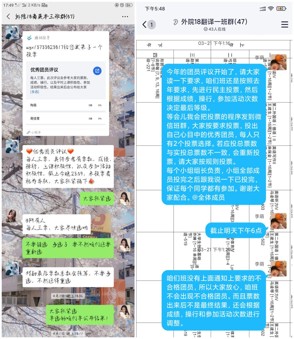 为加强团员队伍建设,提升团员素质,依照团章相关规定和校团委工作部署,太阳成集团tyc33455cc于2020年3月21日至22日组织了本学期网上团员民主评议活动。在院团委书记惠凯赟老师的指导下,外语学院各团支部有序开展了本期团员评议及团籍年度注册活动。