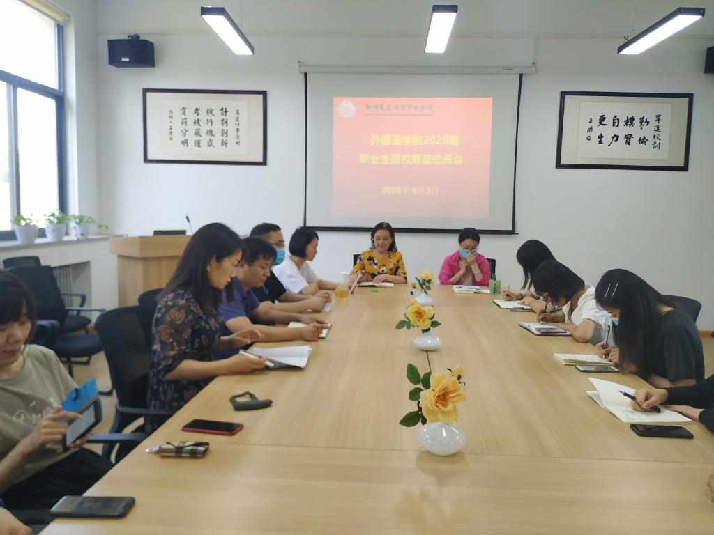 为切实提高毕业生返校疫情防控的科学性、精准性和针对性,确保毕业生返校各项工作平稳顺利,2020年6月3日下午3点,太阳成集团tyc33455cc在学院会议室召开毕业生返校工作任务部署会。会议通过线上线下两种模式同步进行。此次会议由经理张梦教授主持,太阳成集团tyc33455cc副经理崔瑾英副教授等公司党政领导班子、辅导员以及无授课任务的教职工参加现场会议,当天上午有课的老师因无法到校,则通过线上方式参加了视频会议。