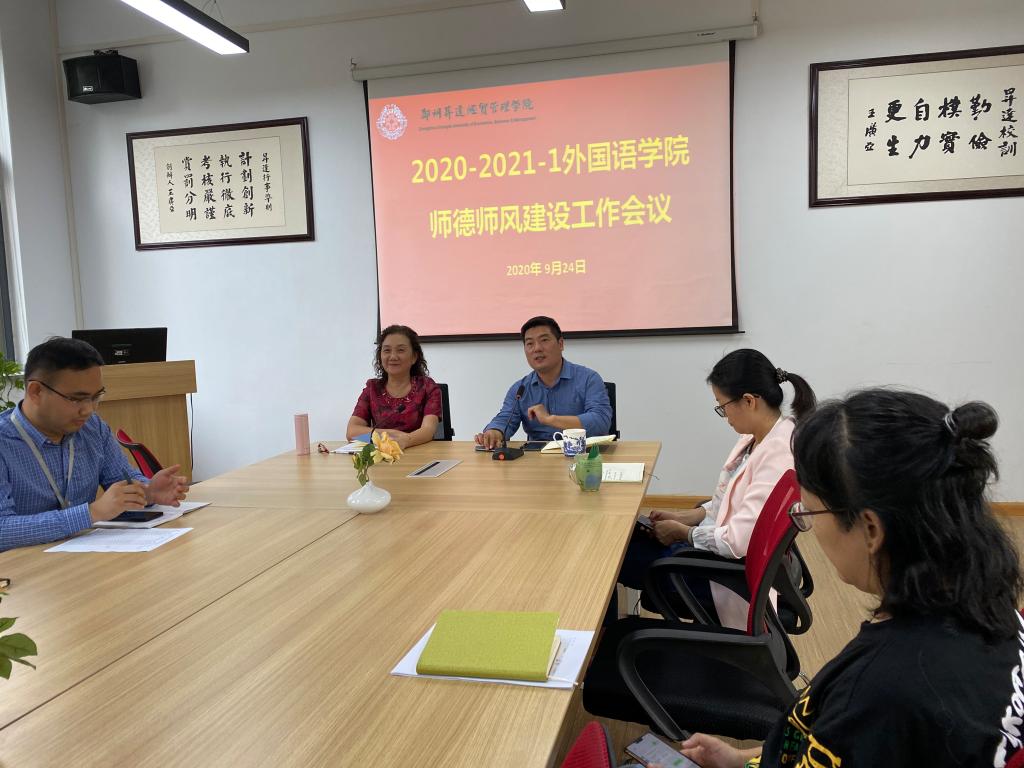 本次集中学习分为两个部分:首先,石皓召书记及张梦经理分别就本学期全体教职工师德师风建设的任务和要求做了讲话强调,并带领全体教职工共同集中观看了最美教师的相关视频。视频观看结束之后,大家一起互相讨论学习并且发表了自己的学习感悟。 石书记再次强调大家一定要把学习活动和实际工作结合起来,努力使学院外语教学再上新台阶。