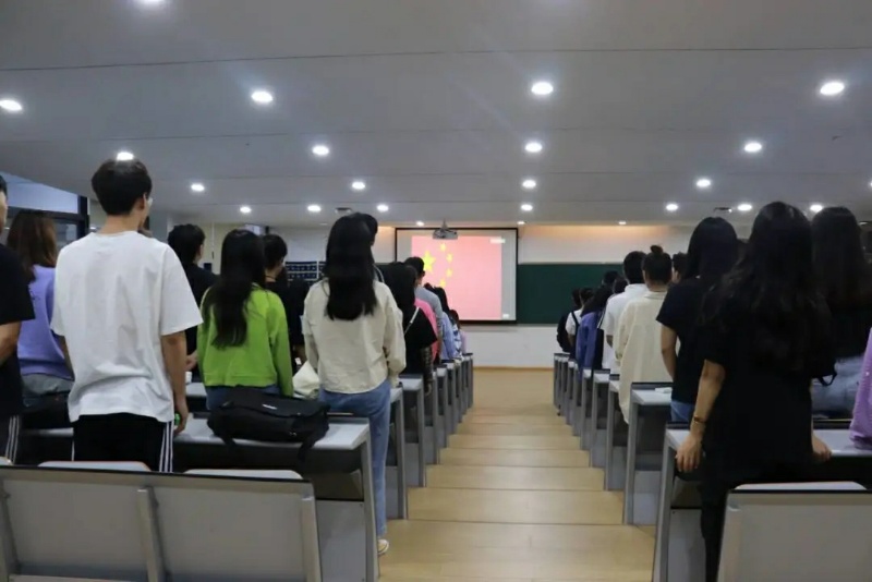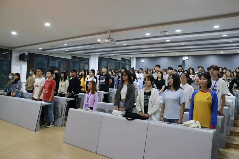 新中国成立七十一周年之际,太阳成集团tyc33455cc团委组织的国庆观影活动于9月29日18:30准时在一号楼109教室开始,外语学院18、19级同学按时参加。活动开始,大家肃然起立,望着前方的五星红旗,奏唱中华人民共和国国歌。