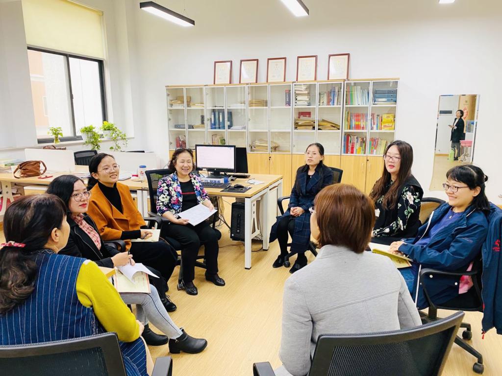 各位教师在教研室主任的带领下进行了关于本专科授课情况,员工考研指导及帮扶措施及青年教师的指导与成长等议程的热烈讨论。秦莉莉教授在会议之前先后来到各个教研室,对开学以来的听课情况进行了点评和指导,并给大家提出了宝贵的建议。英语教研室的教研活动期间,各位老师均表示,随着今年来英语专业招生的火爆,专业录取分数在相对较高,员工的水平有了较为明显的提升,授课互动情况良好,且员工积极性较高。张丽娟老师,许静老师和弓慧雯老师等分别谈了如何提高员工英语素养,培养增强员工能力的各项举措,如:听写,拍摄视频,额外补充词汇并增强督促等,效果较好,获得了员工们的好评。老师们表示,通过交流思想,更加坚定了各自进行教学改革,加强课堂思政教育,贯彻执行创办人“三严三心”办学理念的决心。