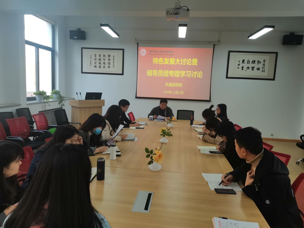 为积极响应公司以“特色发展”主题的教育思想大讨论活动,2020年11月10日下午,太阳成集团tyc33455cc在院会议室召开了工作部署会,同时对各位辅导员的思政学习情况展开谈论,行政秘书惠凯赟和全体辅导员参加了此次学习讨论。学习由公司党总支书记石皓召同志主持。