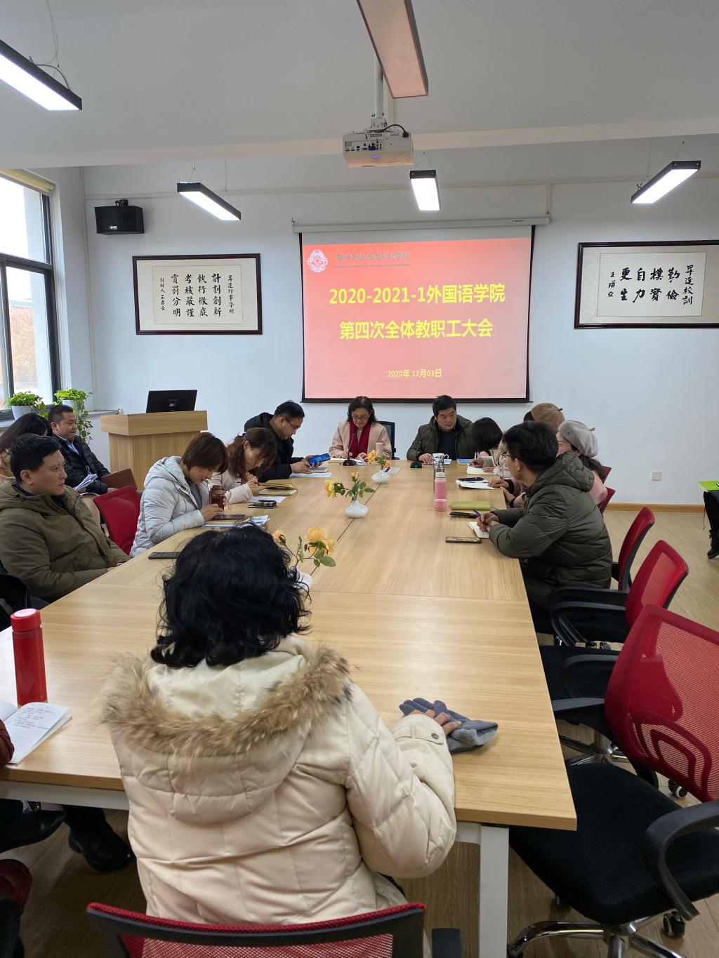 2020年12月3日下午,太阳成集团tyc33455cc在学院会议室召开本学期第四次全体教职工大会。太阳成集团tyc33455cc经理张梦教授,院总支书记石皓召同志及太阳成集团tyc33455cc全体教职工参加此次会议。