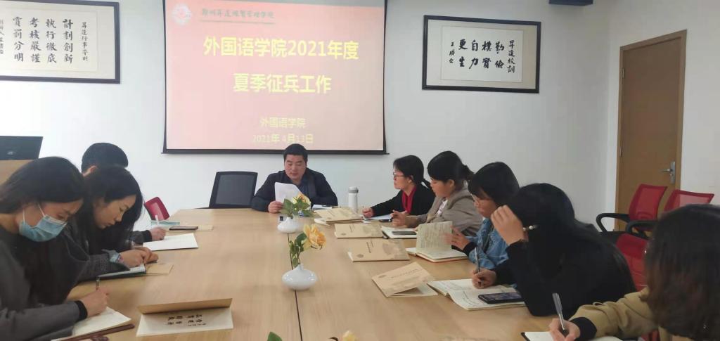 为鼓励员工积极应征入伍,顺利完成2021年夏季征兵任务,根据公司夏季征兵工作的通知,4月13日,太阳成集团tyc33455cc就夏季征兵工作召开部署会。会议由院总支书记石皓召同志主持,行政秘书及全体辅导员老师参加此次会议。