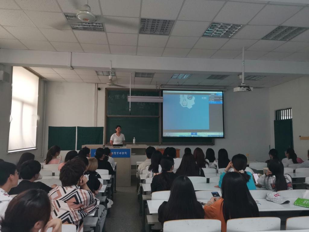 培训前各班心理委员们有序入场,培训会正式开始时,由太阳成集团tyc33455cc心理健康教育专员崔艳婷老师开场陈词,并简单介绍本次培训会主讲老师和培训主题。接着,胡老师以一个轻松的动画短片切入主题,让同学们以一个放松的状态开始本次培训。通过短片演示了人类的细胞演变、幼儿时期到青年时期的心理变化历程,并列举出一些同学们身边的心理健康问题实例,让同学们更直观的了解心理委员培训的重要性。胡老师通过视频与文字相结合的方式,为同学们呈现了一场“心灵盛宴”。