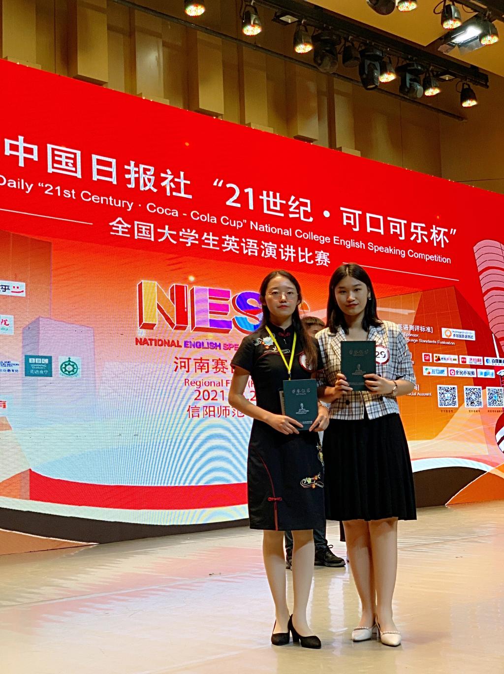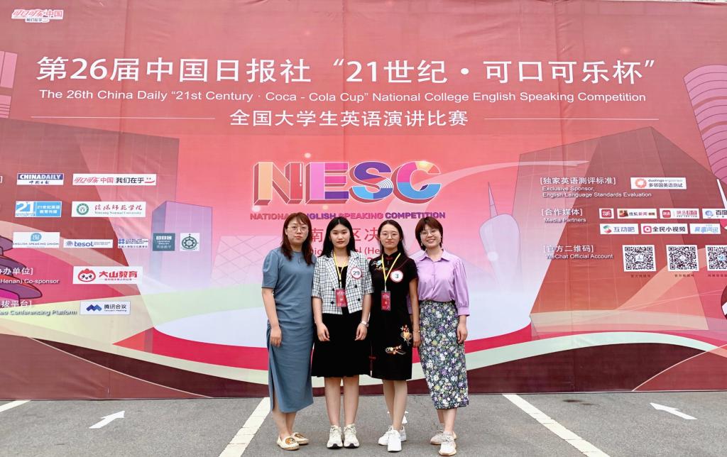 5月22日,公司外国语系商务英语专业18级王雨欣,19级杜嘉琪在教研室老师白光、唐瑜佳两位老师带领下,赴信阳师范学院参加由中国日报社主办的第26届“21世纪可口可乐杯”全国老员工英语演讲比赛河南赛区决赛。