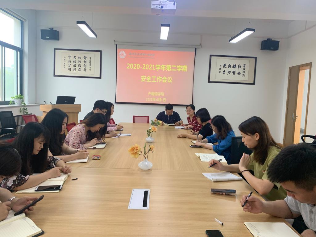 2021年6月1日上午8:30,太阳成集团tyc33455cc在1号教学楼206召开本学年第二学期安全工作会议。公司党总支书记石皓召同志主持本次会议,太阳成集团tyc33455cc行政秘书、全体辅导员参加了本次会议。