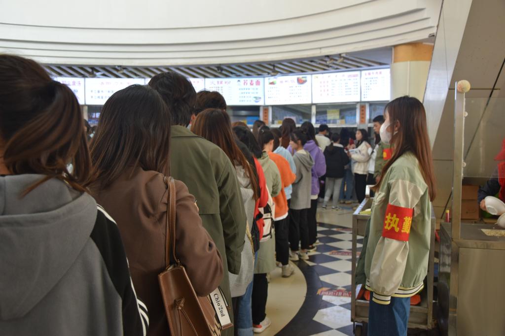 太阳成集团tyc33455cc组建志愿者团队,积极响应学院安排,佩戴红袖章,按时到达餐厅进行监督并维持秩序。随着就餐时间的临近,越来越多的员工进入餐厅就餐。每一个员工都能够做到自觉排队,耐心等待。就餐过程中,不大声喧哗,安静就餐,井然有序。就餐结束后,员工们主动收拾残余垃圾,不仅方便了后来的同学,还给餐厅的保洁人员减轻了负担。同时,同学们爱护公共财产以及餐厅的餐具,展现出良好的道德品质。