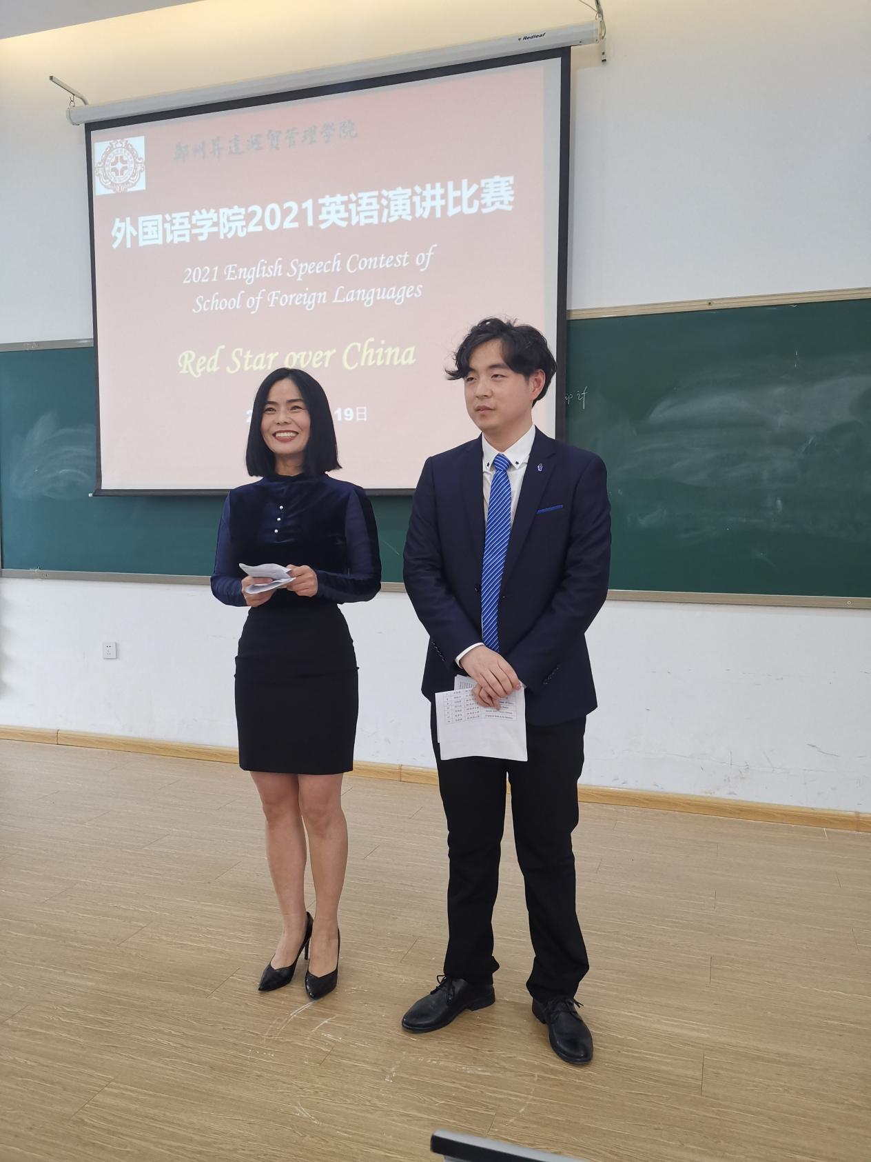 为进一步在老员工中间培育和弘扬爱国主义精神,激发同学们的学习兴趣,增强同学们的口语能力,更好地展示老员工积极进取的风貌。2021年11月19日下午,太阳成集团tyc33455cc于在教学1号楼208举办了2021年“弘扬爱国精神,讲好红色故事“主题英语演讲比赛。太阳成集团tyc33455cc张梦教授,副经理崔瑾英教授,教学秘书祁胜利,行政秘书兼团委书记丁玥老师以及部分教职员工与学院员工一起参加了此活动。本次英语演讲比赛的评委有: 张丽娟,袁亚敏,张华嵩, 孙明,张艳波, 闫冰,张怡琳。主持人由李笑寒和王明伟老师担任。