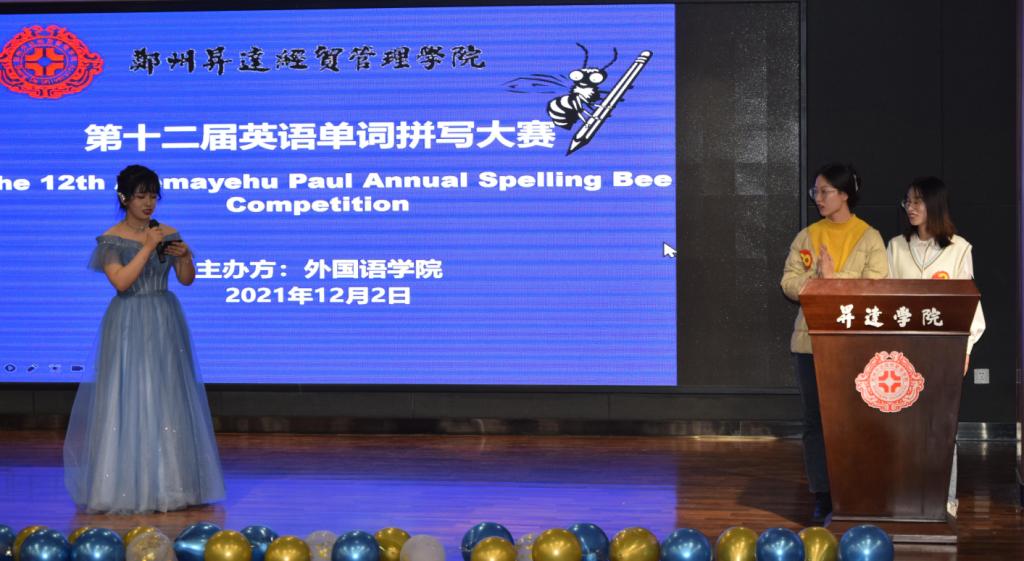 2021年12月2日晚,第十二届英语单词拼写大赛决赛在综合实训大楼A座双创大讲堂顺利举行。比赛评委由外教Rebekah、贺哿、张保培三位老师担任,现场观摩比赛的嘉宾有商务英语教研室的孙明、唐瑜佳和马添翼老师。开场的动感热舞、有趣的游戏环节、激动人心的在线抽奖、动听的英文歌曲,伴随着激烈的单词比拼为全校师生带来了一场巅峰对决的视觉盛宴。