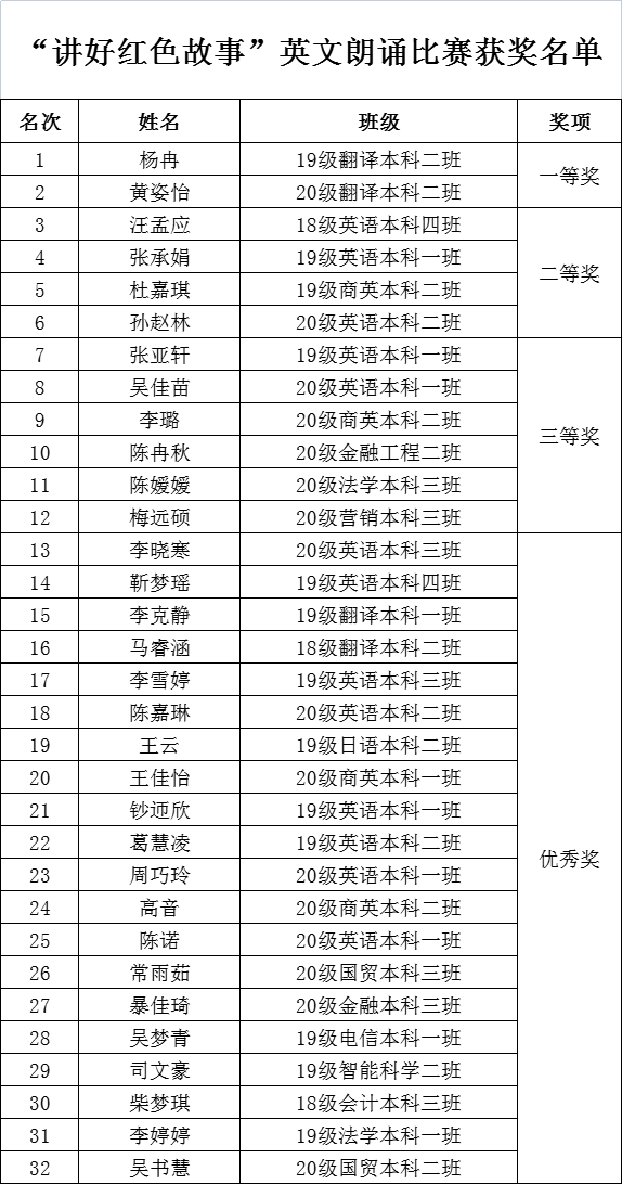 经过层层选拔,最终有32名同学获奖。本次朗诵比赛的开展,为同学们提供了学习红色文化、展示自我能力的平台,提高了同学们的爱国意识,激发了同学们的爱党热情,为公司推进党史学习教育奠定了坚实的基础。