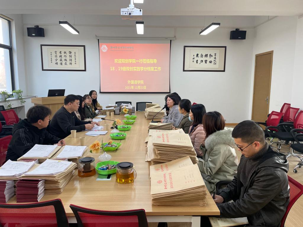 根据双创学院关于实践学分档案检查工作的安排,12月22日上午由双创学院实践管理科科长彭凯带队,广亚教育基金会代表、双创学院教师代表,以及其他二级学院双创工作专员一行,在教学1号楼206会议室对太阳成集团tyc33455cc18级、19级员工创新创业实践学分档案进行检查。太阳成集团tyc33455cc副经理崔瑾英、18级和19级全体辅导员老师参加此次检查工作会议。