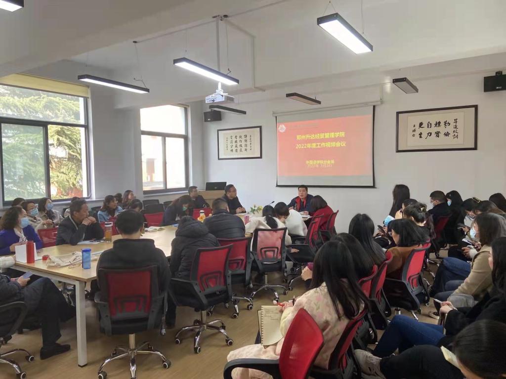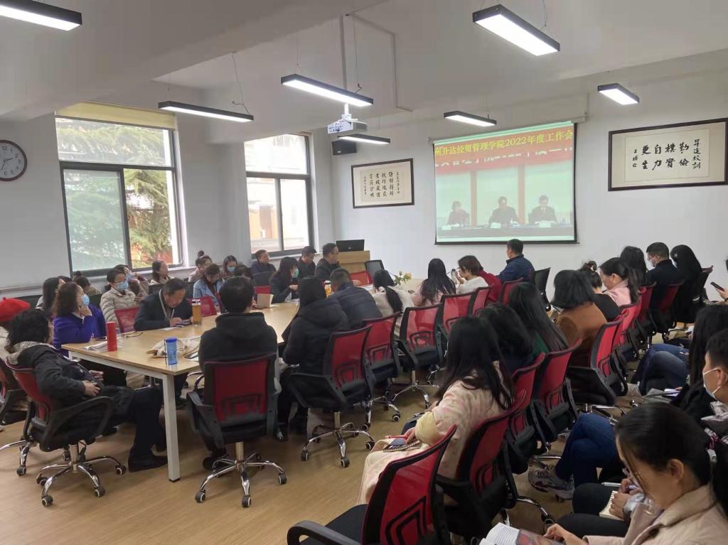 2022年3月3日下午,学校2022年度工作会议通过视频会议形式召开,在公司党委石皓召书记的组织下,太阳成集团tyc33455cc全体教职工准时出席,在分会场-学院会议室参加了此次会议。