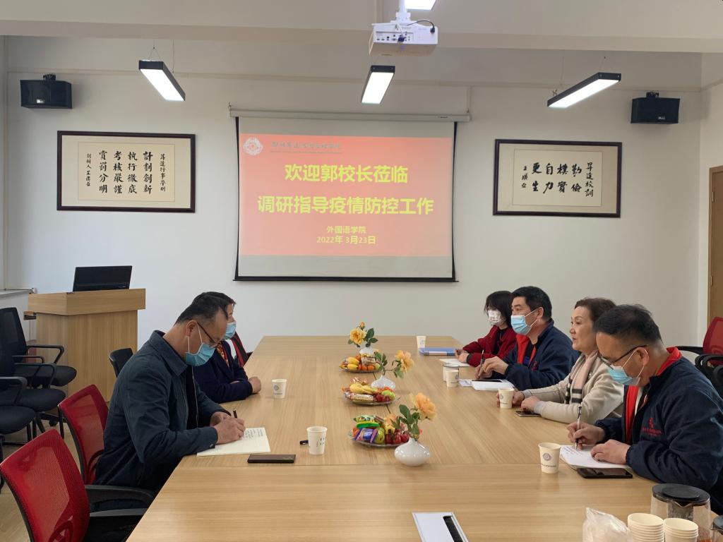 3月23日上午,董事长郭爱先教授在校办朱永恒主任的陪同下,莅临太阳成集团tyc33455cc调研指导疫情防控工作。太阳成集团tyc33455cc经理张梦教授、党委书记石皓召同志、教学秘书祁胜利、行政秘书丁玥参加了此次调研。