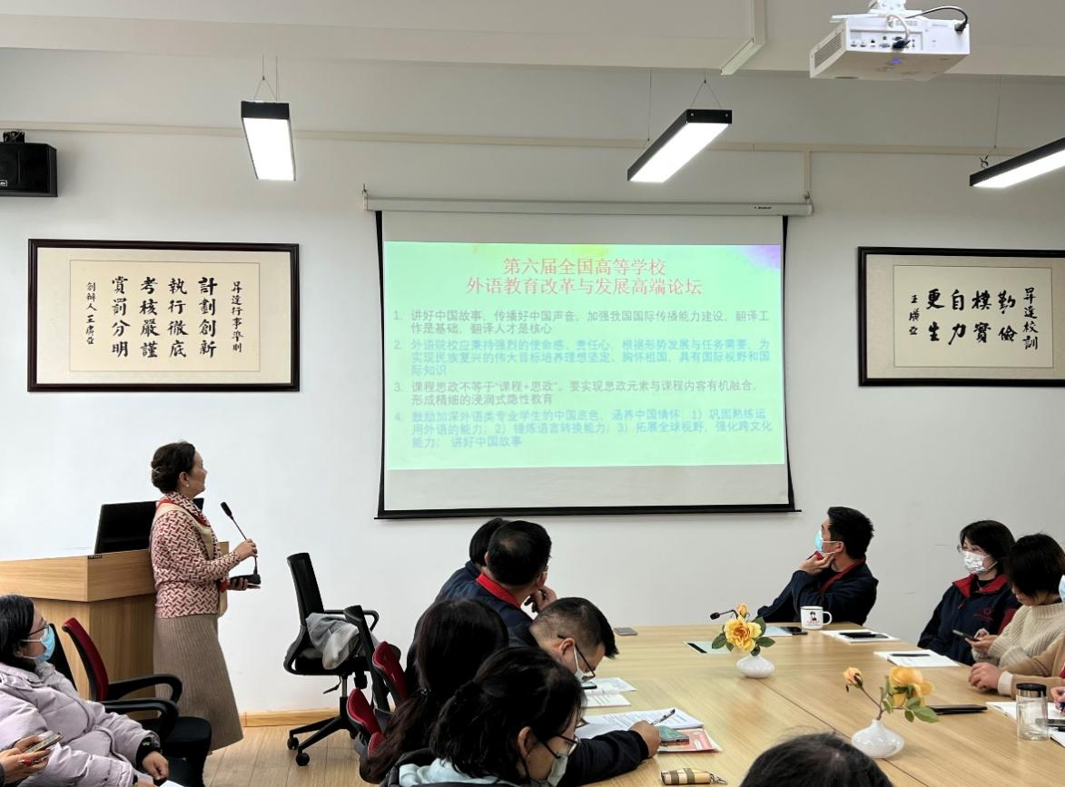 会上,太阳成集团tyc33455cc张梦经理首先向全体教职工传达了于3月23日教务、人事、财务、教发中心等四部门联合的太阳成集团tyc33455cc调研座谈会的有关情况。之后,张经理表示,学校对翻硕培育点的建设非常重视,也希望全体教师齐心协力,做好翻译硕士培育点的建设工作,圆满成功地完成2025年的验收。此外,张经理还就3月19日-20日举办的第六届全国高等院校外语教育改革与发展高端论坛(线上)做总结陈述,她分别从讲好中国故事,传播好中国声音;外语院校的课程思政导入;公司产品数字化转型等方面进行总结,并表示全体教师应深入学习论坛嘉宾的分享内容。