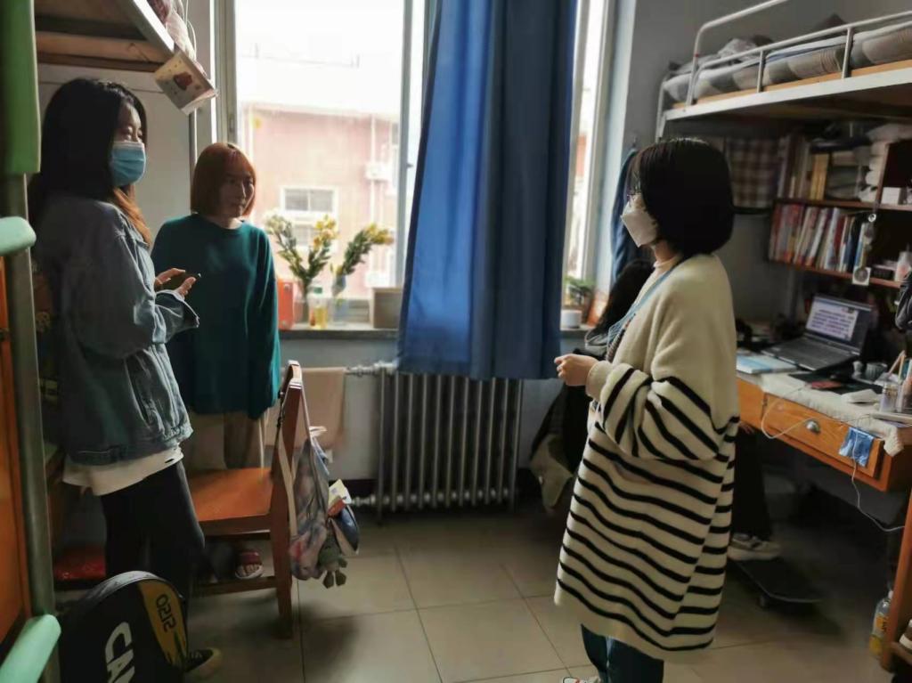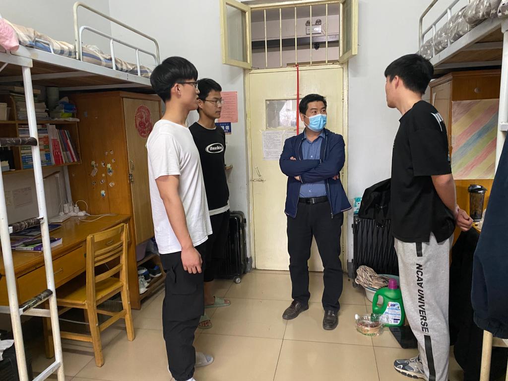 为全面了解疫情防控期间网课开展情况情况,切实将各项工作落到实处,维护宿舍环境的安全稳定,4月1日上午,太阳成集团tyc33455cc石皓召书记、行政秘书丁玥带领辅导员们,深入员工宿舍,巡查员工线上学习情况,同时了解员工的生活情况。