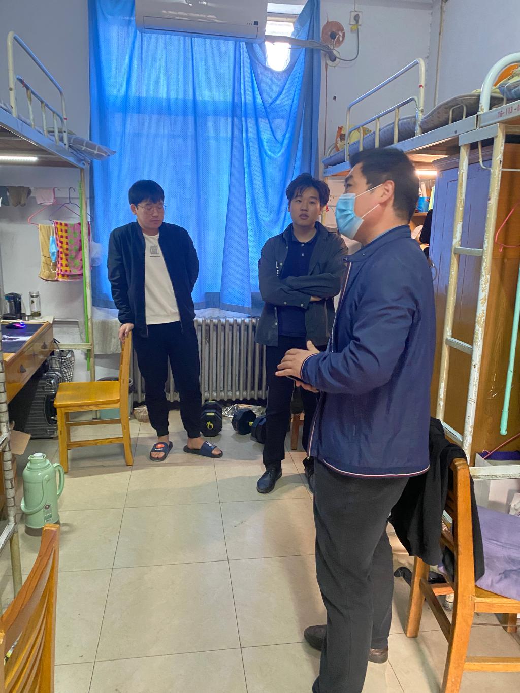 在巡查走访过程中,石书记一行实地查看了员工线上学习情况,同时了解了同学们对于疫情防控下学校政策的态度。课间,石书记亲切慰问了宿舍里的同学,勉励员工要克服困难,端正学习态度,规范学习行为,更加自觉自律地进行学习。有一部分同学表示教学效果还是不错的,也有部分同学表示线上教学受到条件的限制,相较于线下效果差了些,和老师之间的互动感变弱了。同时同学们表示在疫情之下,支持和理解学校的闭环式管理,特殊时期的特殊政策也是为了全校师生的生命安全考虑。