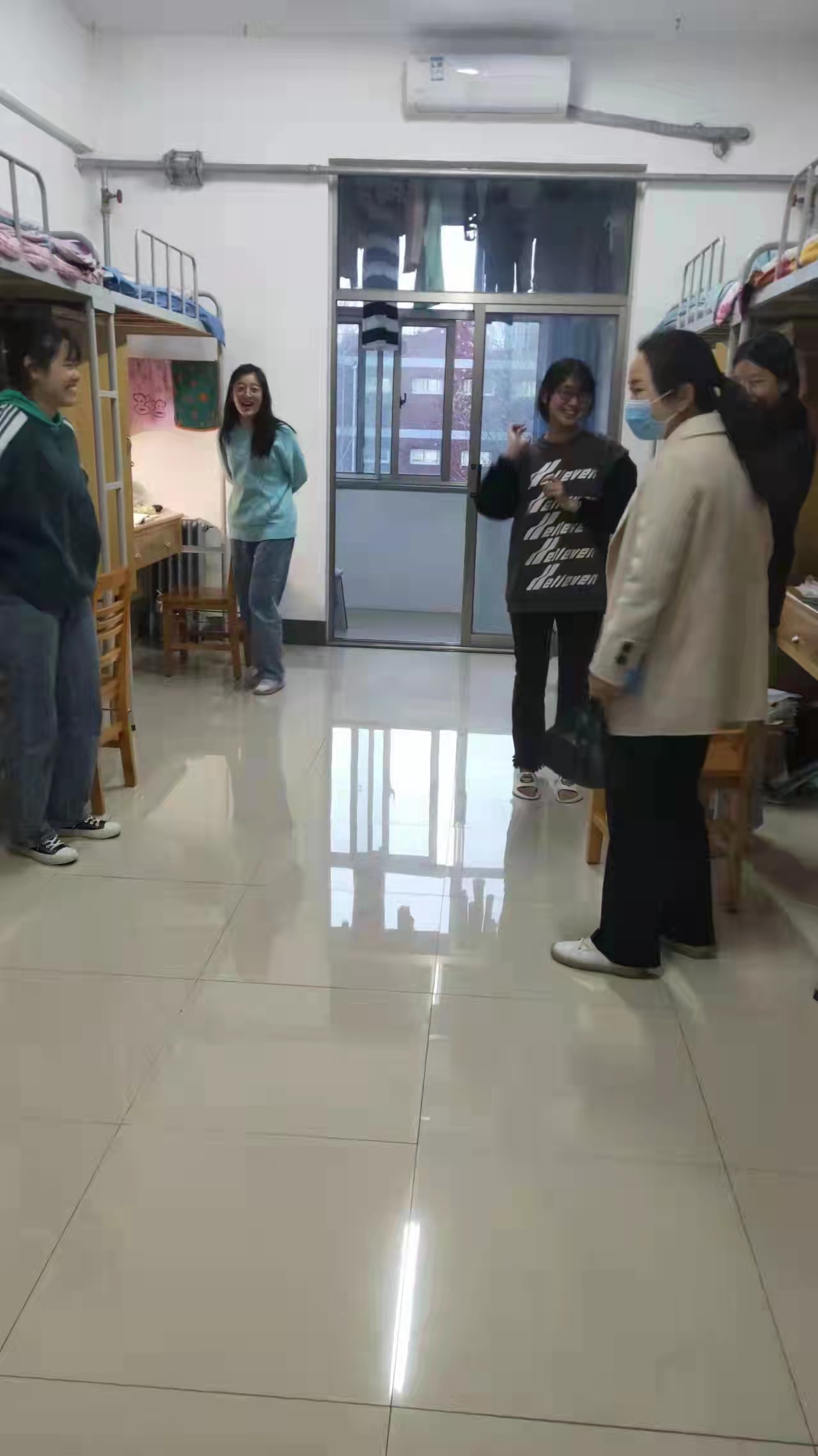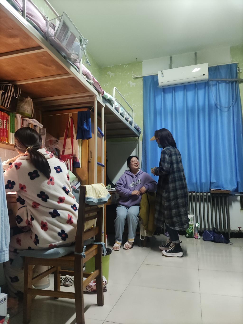 崔艳婷老师孩子只有3岁,逆行来学校的前一天晚上,崔老师反复和孩子说妈妈明天开始就没法陪你了,不知道多久能回家,孩子瞪着大眼睛问妈妈你现在去上班吗,听到妈妈说现在不去后,他舒了口气。瞧,孩子眼里只有当下,这也让崔老师更加明白,眼下自己不仅是位妈妈,更是位辅导员,眼下有更多的大孩子需要自己。到校后,面对每天视频里一声声带着哭腔的期盼“妈妈!你什么时候回来啊,我想你!”,崔老师微笑着安抚孩子,挂断电话,偷偷抹掉泪水,转身又深入宿舍,出现在员工面前,和员工聊天,安抚员工情绪,处理员工的各种困难和问题,看到学校里孩子们脸上的笑容就是对自己最大的宽慰。