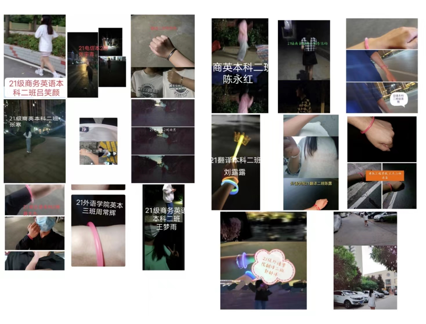 5月26日-5月28日同学们返乡后,自行在户外跑步打卡,5月28日晚上在群内上传三日内跑步的照片,同学们都积极配合,多名同学参与线上打卡,并上传佩戴荧光手环打卡照片。