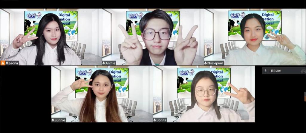 由于疫情原因,决赛采用线上形式进行。依据本次大赛主题——企业数字化转型或升级,各参赛队伍由队员之间分工合作完成比赛任务,专家根据选手表现进行打分。经过激烈角逐,公司由2019级商务英语本科班杜嘉琪、李文龙、夏亚红、郭俊燕、贺垚佳组成的竞赛团队,凭借《花花牛》项目的出色表现,以河南赛区总分第一名的成绩荣获大赛一等奖并成功晋级全国决赛。王诗淇、李静怡、程怡硕、王浩杰、王培建小组的《惠云康养》项目则荣获大赛二等奖。