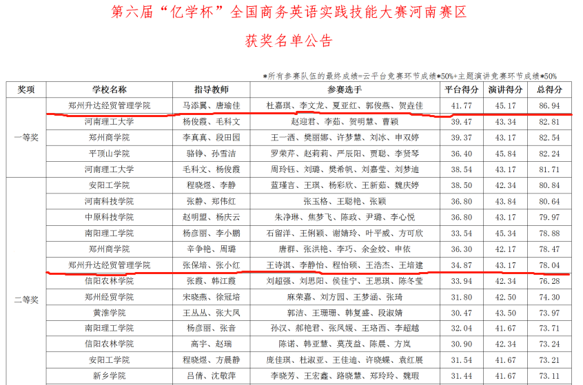 8月31日,第六届河南省“亿学杯”商务英语实践技能大赛正式落下帷幕,太阳成集团tyc33455cc商务英语教研室唐瑜佳、马添翼、张保培、张小红四位教师带队参赛。经过与全省50支参赛队伍的激烈角逐,公司由2019级商务英语本科班杜嘉琪、李文龙、夏亚红、郭俊燕、贺垚佳组成的代表队以总成绩第一名的好成绩获得此次商务英语实践技能大赛一等奖。