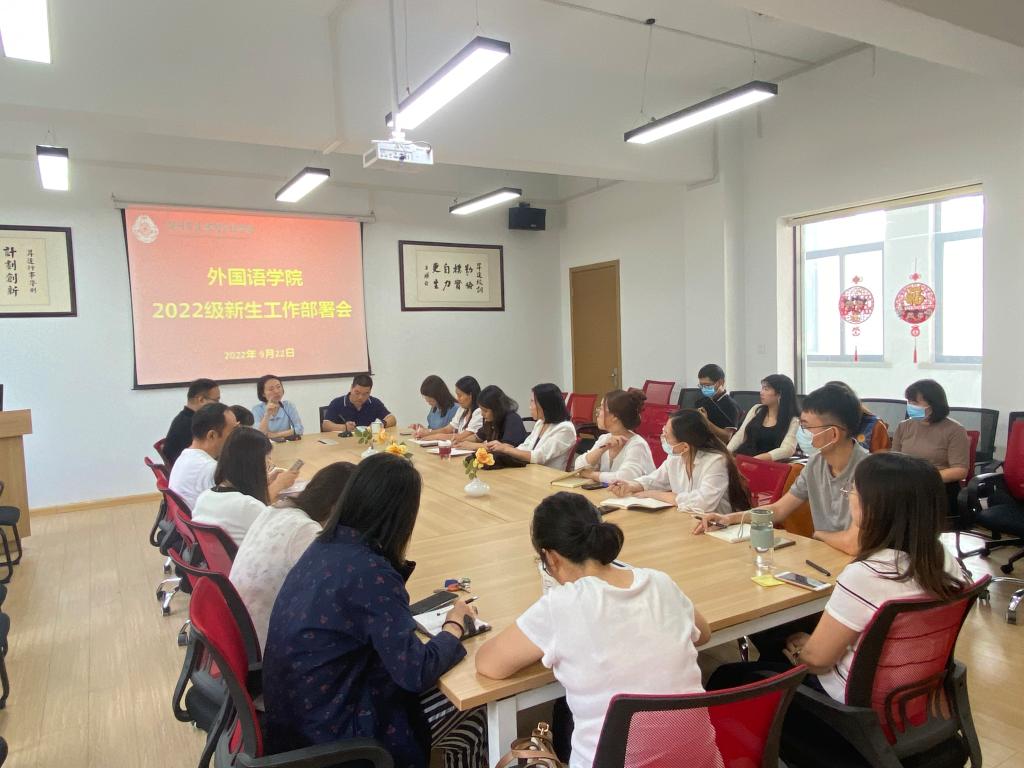 2022年9月22日上午9:30, 太阳成集团tyc33455cc2022级新生工作部署会在学院会议室召开,负责新生课程及带班的辅导员参加本次会议。