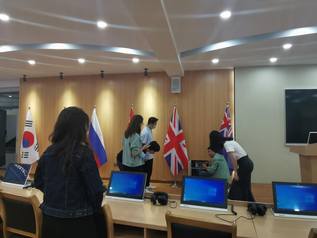 通过本次活动,翻译教研室教师对新的教学系统有了深入的了解和系统的掌握,为将实验室快速投入使用做了良好的铺垫。相信在后续教学过程中,大家可以更好地利用先进的教学系统,让课堂更加高效,更加有趣,让员工体验沉浸式的同传练习场景!(图文/王梦审核/石皓召)
