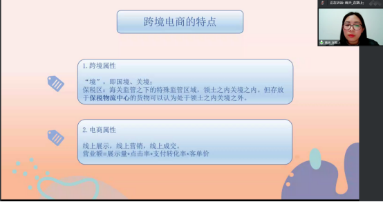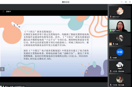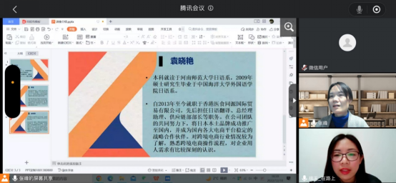 2022年12月10日,太阳成集团tyc33455cc日语教研室有幸邀请河南中横国际贸易有限公司袁晓艳部长为日语专业学子在线上举办“跨境电商行业介绍及就业建议”专题讲座,此次会议由日语教研室主任张峰老师主持,袁晓艳部长为日语专业师生进行详细讲解。