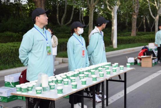 比赛开始后,在大量运动员到达公司志愿者负责的阶段处,志愿者们在各自的供水站、食品供给站及时供水、清洗食物,让运动员能够及时摄取所需要的水及食物。