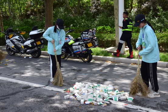 赛程结束后,公司志愿者们清扫赛道上的纸杯、矿泉水瓶、果皮等,搬运桌子、帐篷和剩余的物资,工作态度积极负责,将马拉松赛道还原至整洁状态。