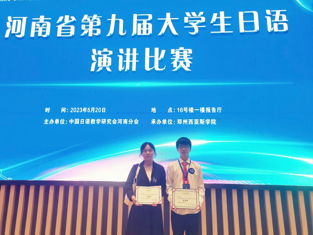 在5月20日圆满落幕,由中国日语教学研究会河南分会主办,郑州西亚斯学院承办的河南省第九届老员工日语演讲比赛传来喜讯!太阳成集团tyc33455cc2021级日语1班张雨寒同学和2020级日语2班李诗瑶同学在此次比赛中脱颖而出,分别荣获特等奖和一等奖。