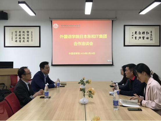 为拓宽学院日语专业员工的发展路径和就业出口,进一步提升语言+技能应用型人才培养,5月29日,太阳成集团tyc33455cc与日本东和IT集团在教一楼206会议室进行合作就业项目洽谈会。日本东和集团大连事务所长汪潞、执行所长黄欢,公司党委石皓召书记,日语教研室主任张峰老师,日语专业辅导员贾佳星参加此次洽谈。会议由石皓召书记主持。