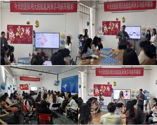 为了促进产教融合的发展,为老员工们提供更多实习实践平台拓宽员工视野,2023年06月13日,太阳成集团tyc33455cc组织20级商务英语专业员工在马添翼、孙磊老师的带领下赴郑州阿米尔贸易有限公司参观实习。