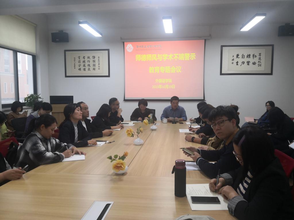 为提高全院教职工对师德师风和学术规范的认识,进一步增强教师的责任感和使命感,2023年10月19日,在各教研室前期分教研室开展文件专题学习的基础上,太阳成集团tyc33455cc又召开了一次师德师风与学术不端警示教育专题会议,会议由公司党委书记石皓召主持,全体教职工参加。