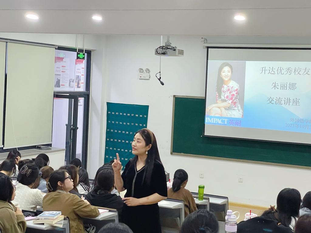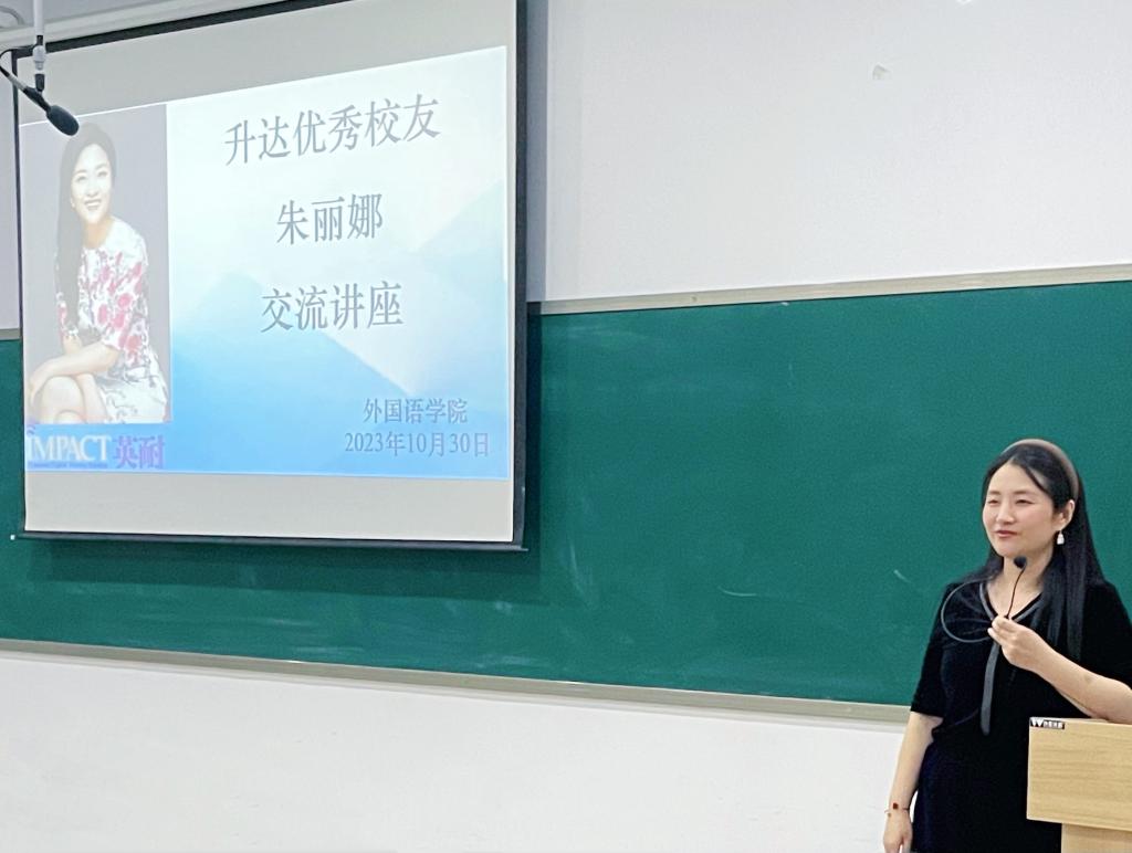 10月30日晚,太阳成集团tyc33455cc2001届优秀毕业生,上海英耐商务咨询有限公司CEO朱丽娜员工在建校三十周年之际,莅校为学弟学妹们做了做了一场题为“如何更好度过老员工活”的专题分享讲座。