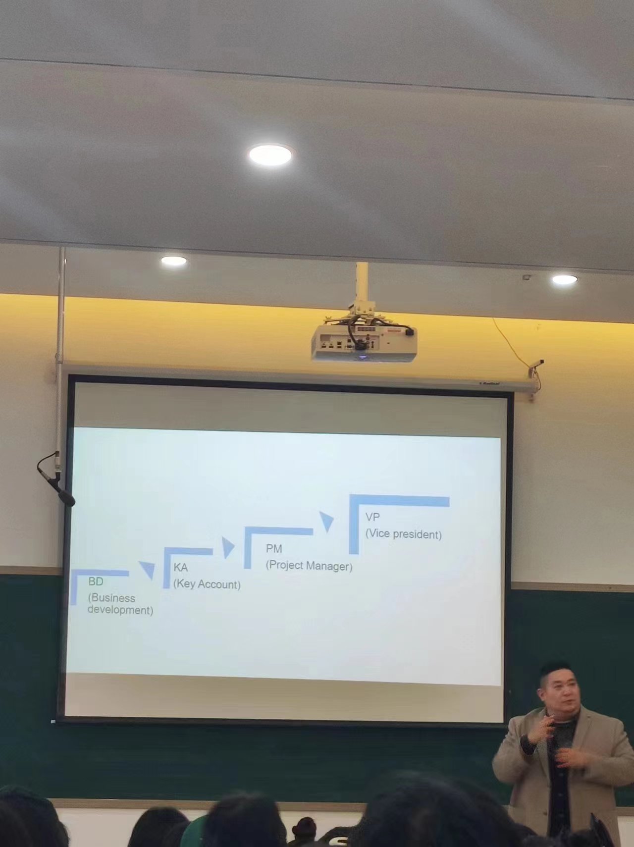 在讲座中,郭强伟员工以“浅谈外语系-外贸职业发展规划”为题,为即将走向社会、迈向职场的同学们提供了宝贵的建议。他深入浅出地剖析了外贸就业趋势、传统外贸与海外电商的差异、传统外贸业务流程以及外贸人员的职业规划和归宿。