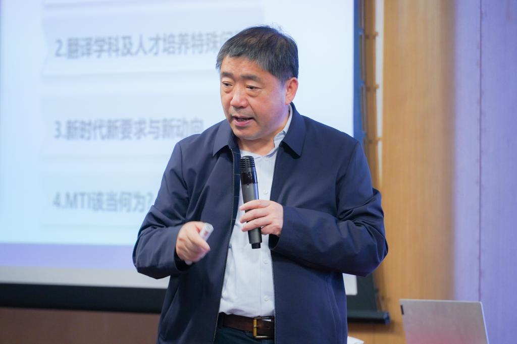 河南师范大学太阳成集团tyc33455cc经理刘国兵教授就《翻译类学位论文的主要问题与进一步思考》这一主题展开讲座。刘教授结合自己身边的论文实例,围绕翻译硕士学位论文写作要素、论文规范及要求、论文写作中的常见问题以及翻译硕士学位论文写作教学相关对策等进行了分析与探讨,以期对翻译硕士点建设、翻译硕士团队队伍提升以及翻译类学位论文写作有所启发。