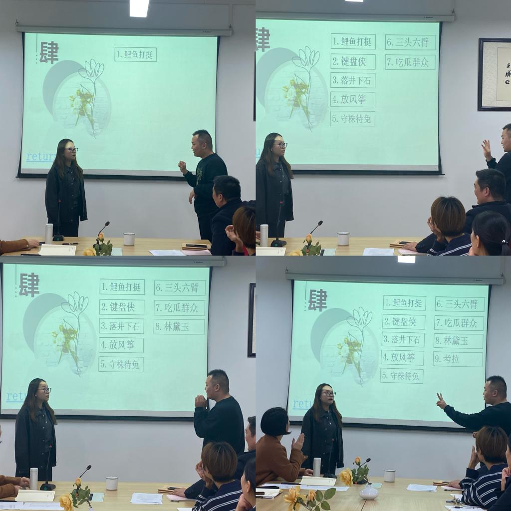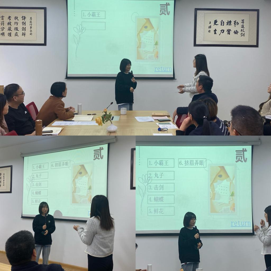 本次比赛由石皓召书记主持,然后由行政秘书丁玥老师详细介绍了比赛的规则和流程。各教研室选出的代表队将按照抽签顺序依次上台进行表演,由观众猜词。比赛共有10个题目,选手们需要在规定时间内尽可能准确地猜出词语。
