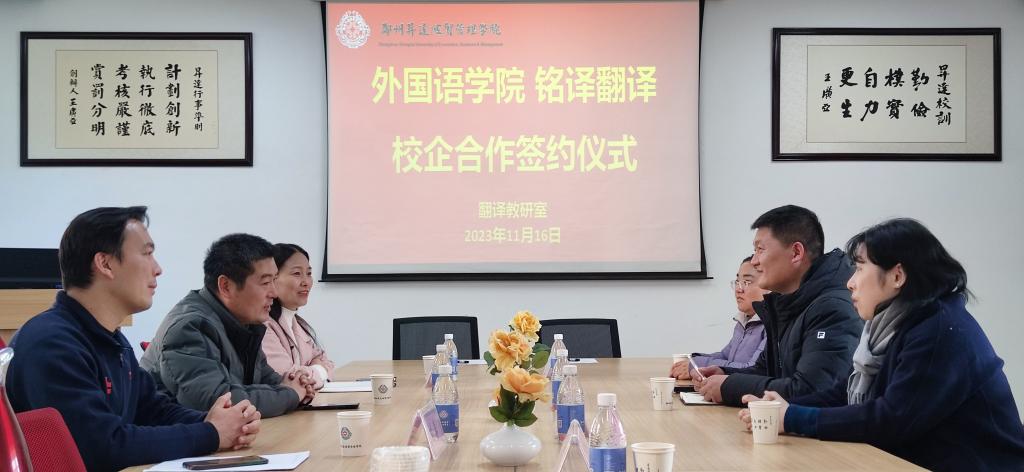 在签约仪式上,双方就翻译专业与铭译翻译如何进行合作进行了深入的洽谈,双方达成了一致意见,并签署了校企合作协议。此次协议的签署标志着双方的合作正式进入实质性阶段,将为太阳成集团tyc33455cc翻译专业的实践教学和员工就业提供强有力的支持。