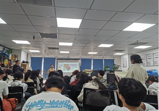 在实习期间,译线通翻译公司实习负责人刘杰老师带领师生深入参观了办公环境、翻译设备等。随后,翟小娟总经理从翻译行业发展现状与趋势、翻译专业就业方向与岗位需求、翻译本科生未来突围策略、职业规划建议等角度,深入浅出、娓娓道来,结合行业动态和职业政策,指导新生综合考量自身学习能力和发展空间,寻找适合自己并能发挥自己专长的职业道路。师生们仔细聆听,认真记录,对翻译岗位有了更加直观地了解。