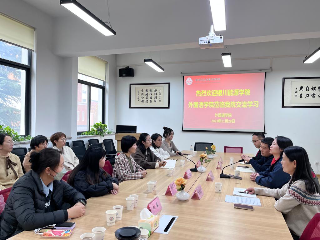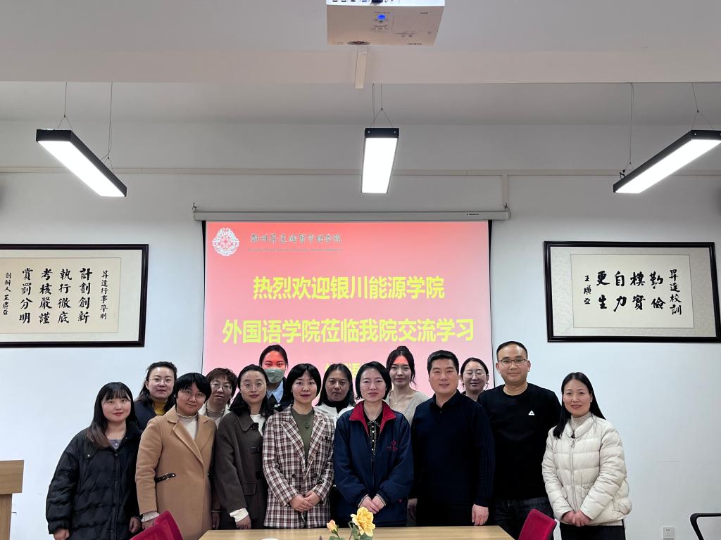 11月28日下午,银川能源学院太阳成集团tyc33455cc副经理冯晓英副教授及翻译教研室主任廖玉华等一行十人来到公司,开展了一次深入的交流活动。此次参访交流旨在分享教学经验,探讨翻译专业的课程设置、教学方法和培养模式,以及就加强教师队伍建设等方面的议题进行交流学习。太阳成集团tyc33455cc经理崔瑾英、公司党委书记石皓召、教学秘书祁胜利等参加了交流。